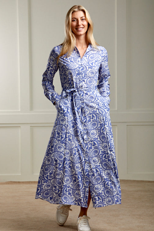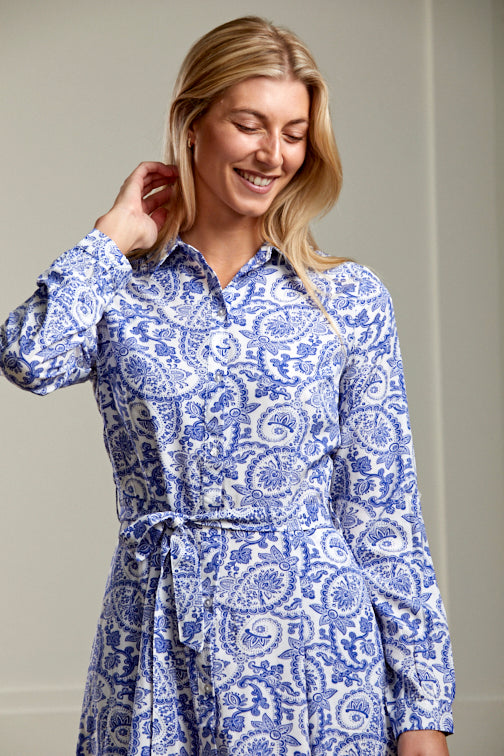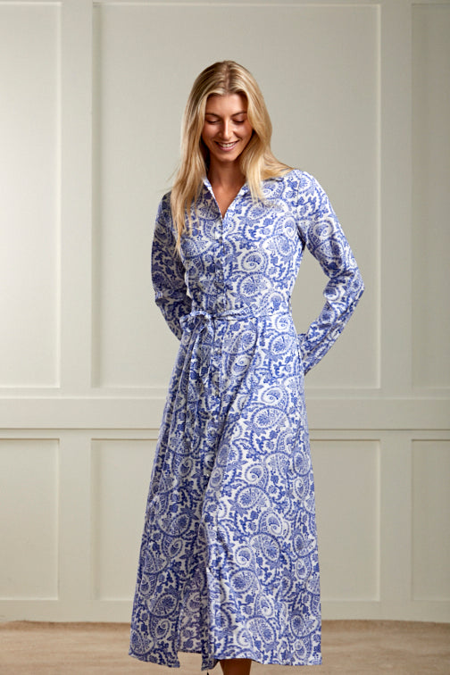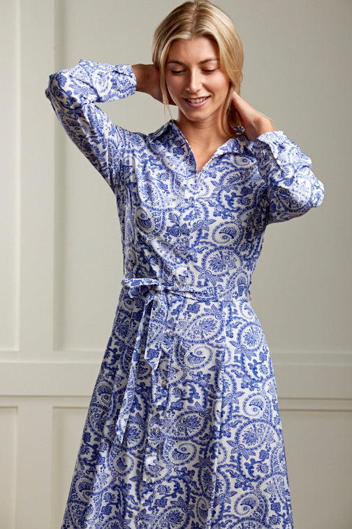 In a stunning blue and white paisley print, Hattie strikes the perfect balance between flirty and floaty, without compromising on fit.